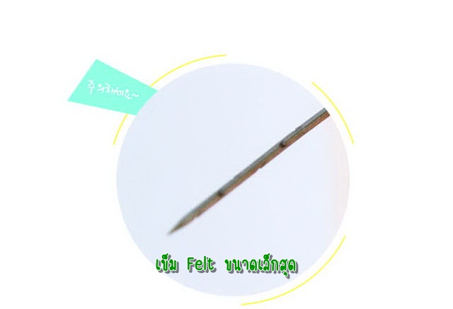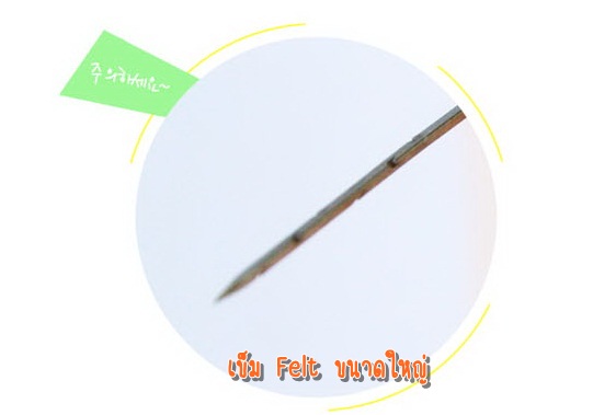 เข็มจะมีขนาดต่างกันที่ร้านมี 3 ขนาด สำหรับผู้เริ่มต้นที่อยากให้ผลงานเป็นรูปร่างเร็วๆ ให้ใช้เข็มเบอร์ใหญ่ แต่ถ้าชิ้นงานต้องเน้นการเก็บรายละเอียดเล็กๆ น้อยๆ เข็มเบอร์เล็กจะใช้งานได้ดีกว่า หากต้องการเลือกเข็มแค่เล่มเดียว ขอแนะนำเข็มเบอร์เล็ก เพราะถึงแม้ชิ้นงานจะเป็นรูปเป็นร่างไม่เร็วเท่ากับใช้เข็มเบอร์ใหญ่ แต่การสร้างสรรค์ชิ้นงานเฟลท์ สิ่งสำคัญสูงสุด คือ ความอดทน และสิ่งที่ควรระวัง คือ ใยขนแกะค่อนข้างบอกบาง ถ้าเราออกแรงแทงใยมากไปก็อาจทำให้ใยขนแกะหลุดลุ่ยได้